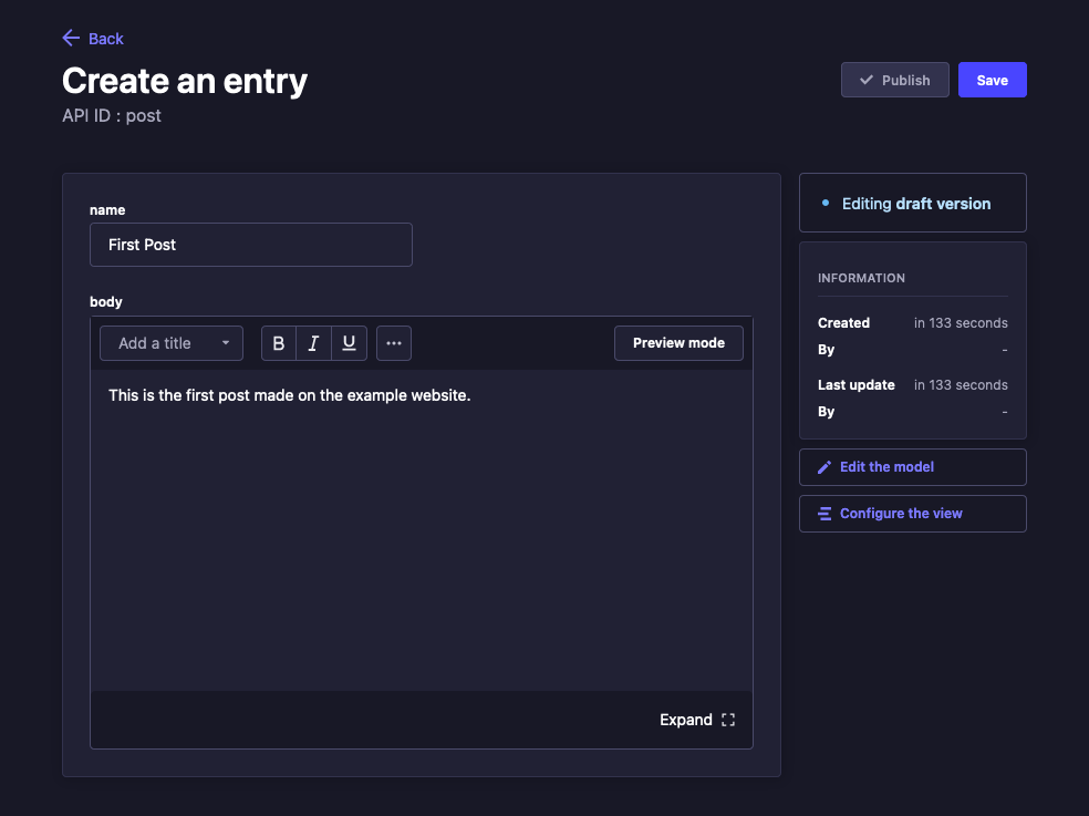 Strapi’s advantages mostly come down to control and customization. Strapi is self-hosted, and with Strapi practically every aspect of your CMS can be customized to meet your needs. This also makes Strapi a much better fit for modern frontend solutions.
